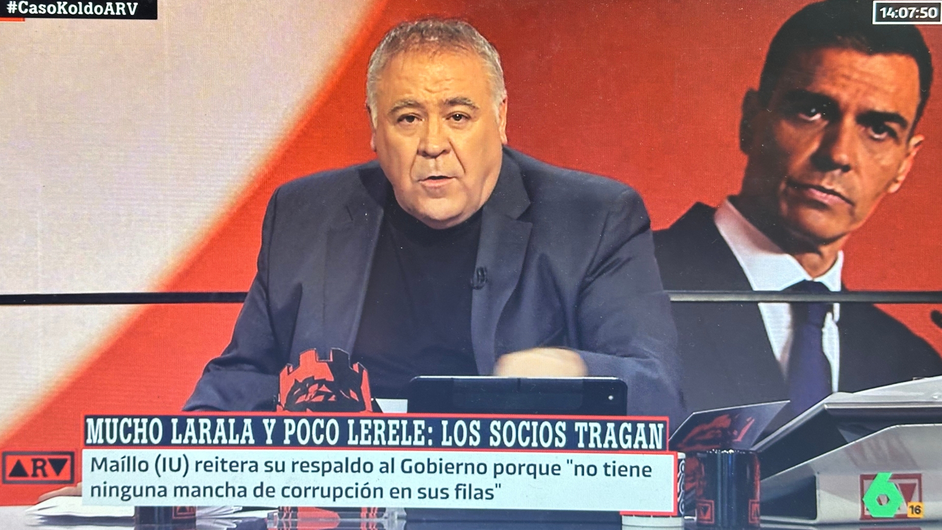 Ferreras ha comentado la defensa que Antonio Maíllo, coordinador federal de IU, ha hecho del Gobierno de Pedro Sánchez, desvinculándolo de la trama Koldo. Maíllo ha distinguido entre las explicaciones que Sánchez debe dar como líder del PSOE y la actuación del Ejecutivo, que —según ha subrayado— “no está tocado por la corrupción".