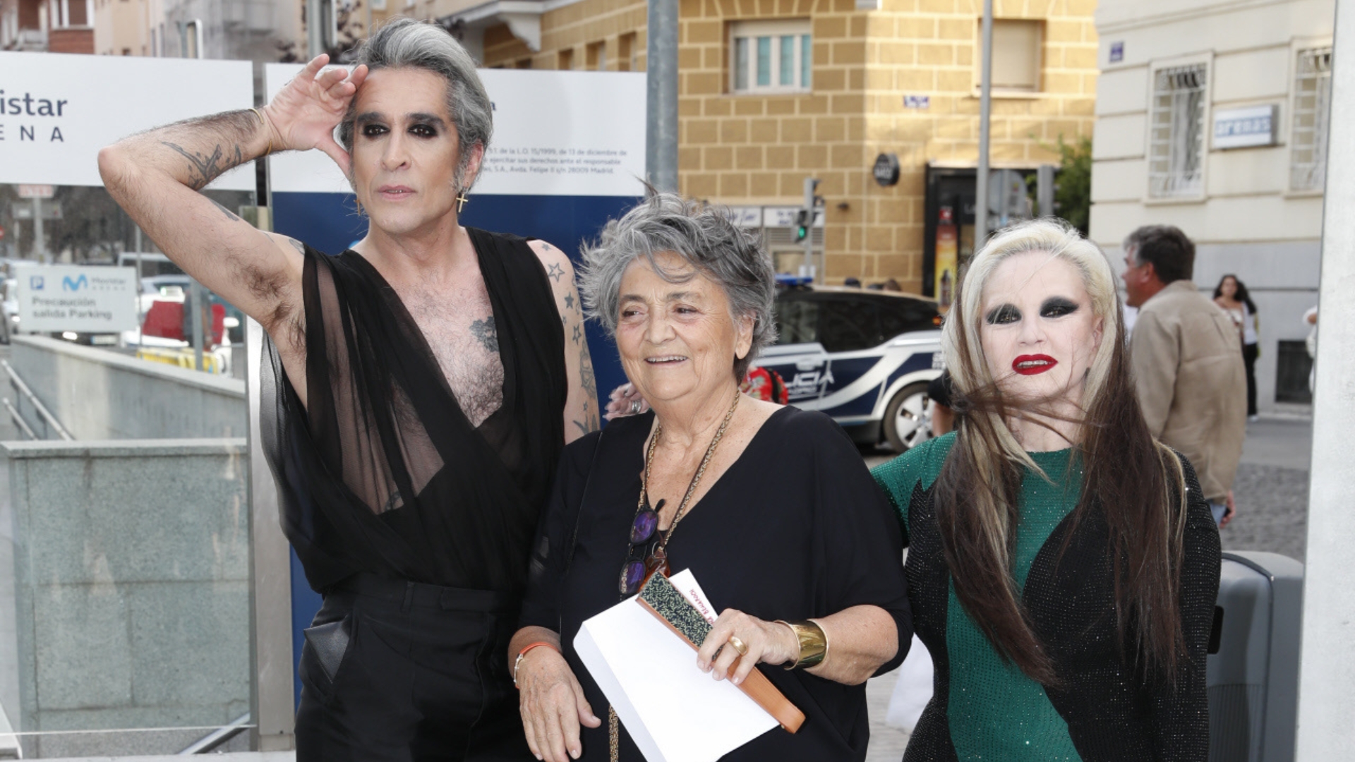 La icónica diseñadora de moda española Elena Benarroch junto a Mario Vaquerizo y Alaska.