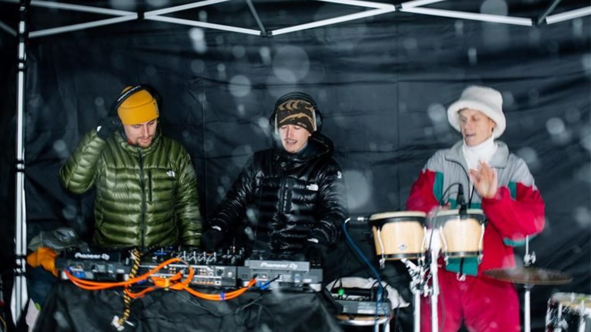 Lejos del formato de concierto convencional, el dúo de Mataró desplegó su versión más electrónica, canalla y desenfadada, con una sesión de DJ que combinó sonidos tech-house, mezclas propias y reinterpretaciones de los temas que los han consolidado como uno de los grandes fenómenos de la música catalana actual. Un formato concebido específicamente para la montaña y el après-ski, que generó un gran clima de proximidad y complicidad con el público.