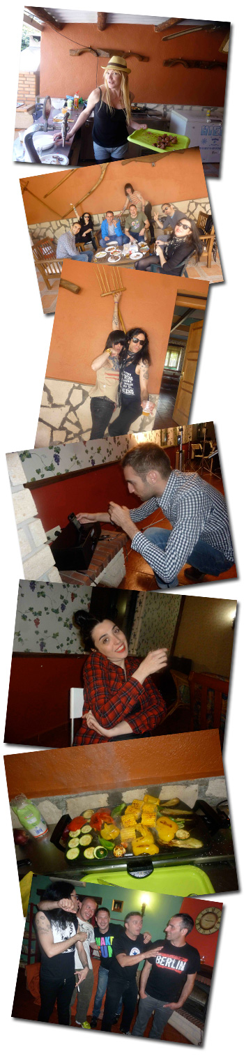 El caso es que allá que nos marchamos el Jueves Santo, repartidos entre un coche (donde viajaste tú, Nancy O, Nancy Reagan y Miguelito Parla) y una furgo de nueve plazas conducida por Pedro y Orlando (que se apuntaron por primera vez, procedentes de Canarias) y ocupada por Topi, Israel su familia perruna encabeza por la perra Gala y dos de sus hijas (Umma y Teresa) así como Nancy Travesti, Alvarito y yo. El viaje fue rápido y una vez instalados en la casa, descargado el cargamento de comida (todo de El corte inglés) y puesto en marcha el barril de 50 litros de cerveza (no sé si sabrás que al final no quedó nada y eso que teníamos 2 barriles de 50 litros y uno de 30!!!) la jornada gastronómica se inauguró con la ya clásica parrillada argentina protagonizada por la gran Topacio y las consiguientes carcajadas ahogadas que a día de hoy aún me tiene resentida mi garganta (¿podré grabar bien mañana las dos primeras canciones del nuevo disco de Nancys?).