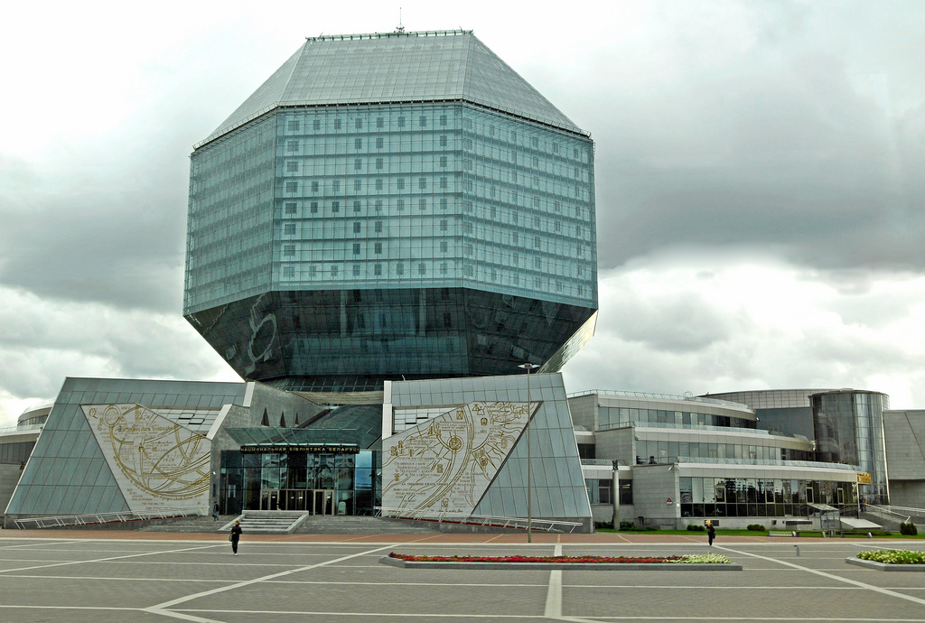 El nuevo símbolo de Minsk es esta monumental biblioteca construida en 2005 y que es obra de M.K. Vinogrdov y V.V. Kramarenko. Tiene 22 plantas, una sala de conferencias con capacidad para 500 personas y 2.000 puestos de lectura