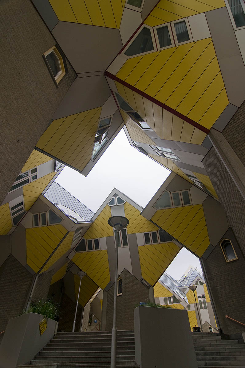 Otro de los edificios modernos que se ha convertido en un símbolo de la ciudad de Rotterdam. Fueron diseñadas por el arquitecto Piert Blom, que según se inspiró, aunque dista mucho de parecérseles, en los puentes medievales con viviendas como el Ponte Vecchio de Florencia