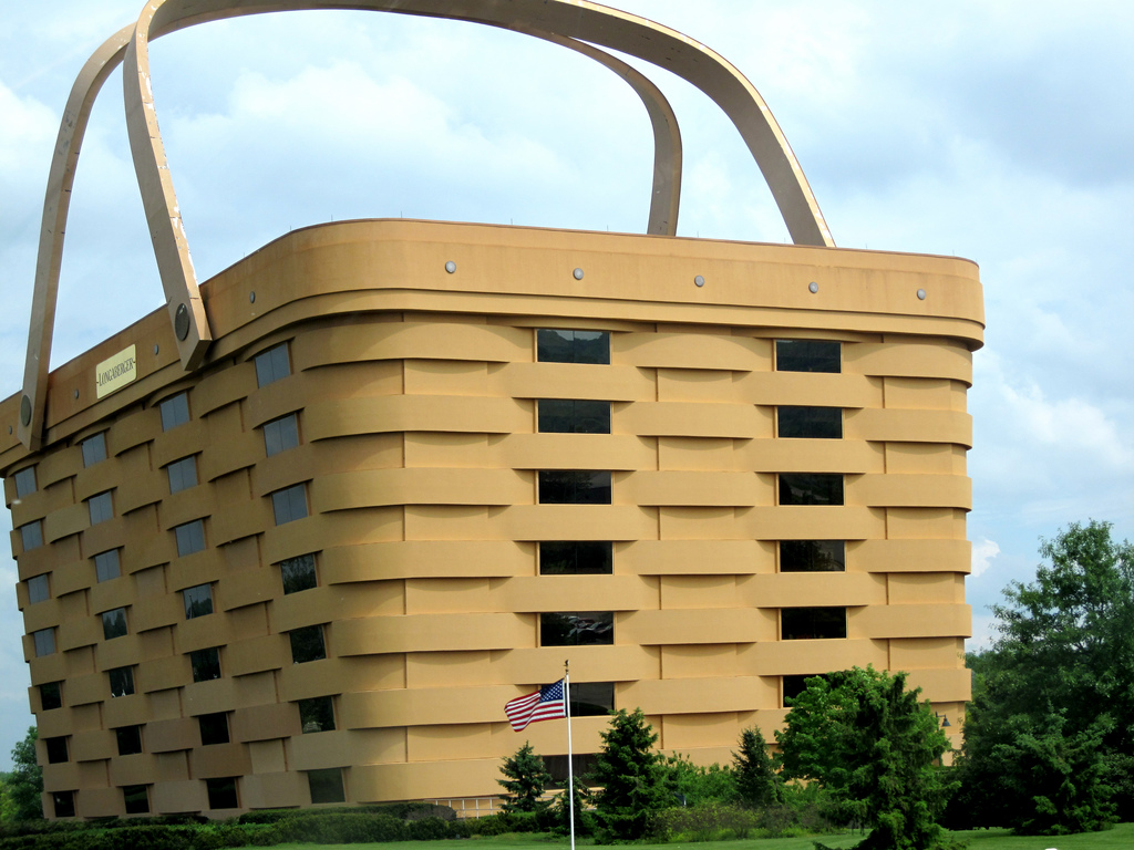 Cuando la compañía Longaberger, dedicada en sus inicios a la fabricación artesanal de cestas de madera, decidió edificar un edificio para sus oficinas centrales quiso darle un inequívoco aspecto corporativo. Solo cabe decir que afortunadamente no fabricaban wáteres