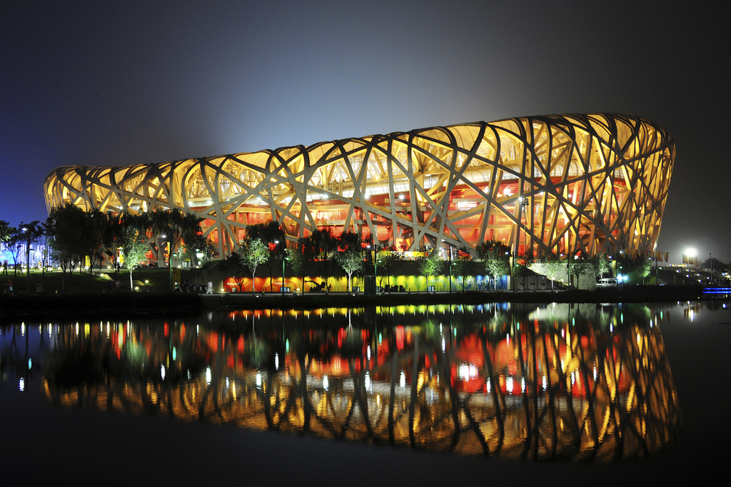 La gran estrella de los infames Juegos Olímpicos de 2008, el estadio en Pekín ha sido conocido mundialmente como el "nido de pájaro" por la maraña metálica que lo rodea. Es obra de los Jacques Herzog y Pierre de Meuron y, aunque después de los JJOO todos nos hemos acostumbrado a su aspecto, al principio fue un auténtico shock visual