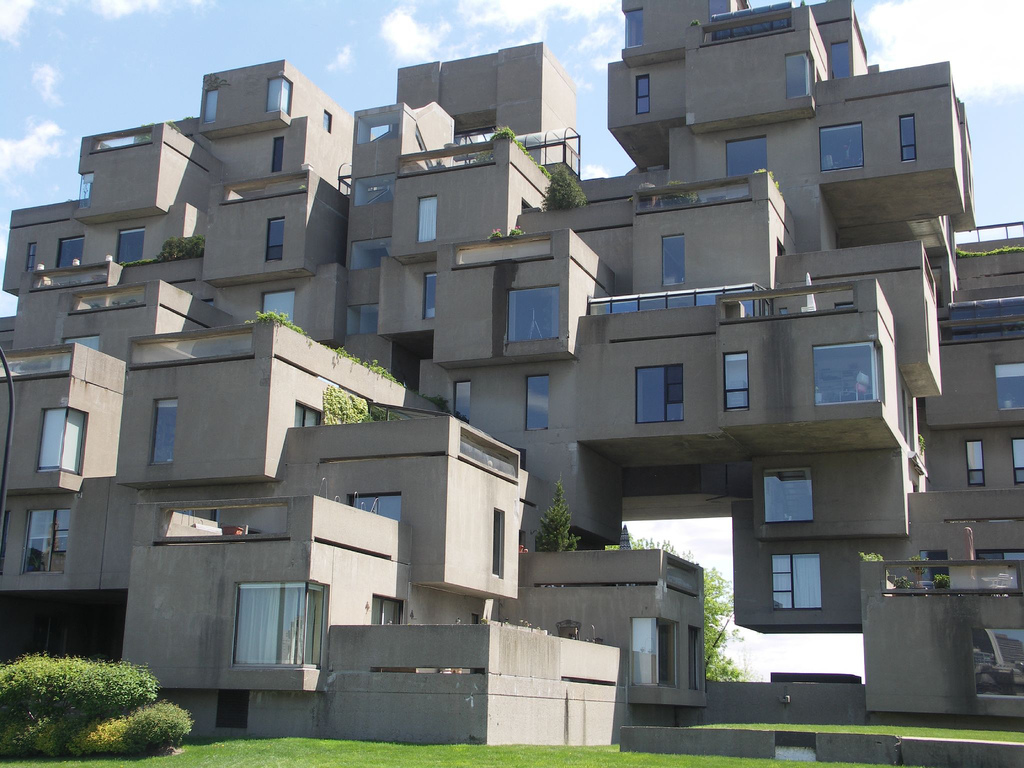 Otra obra que se debe a la Expo de Montreal del 67, su primera función fue ser un pabellón sobre las viviendas del mundo, además de servir de alojamiento a dignatarios y personajes que acudían a la muestra. El proyecto, de Moshe Safdie, buscaba encontrar una fórmula para construir a un coste razonable apartamentos independientes, con jardín y con un alto grado de privacidad pese a integrarse en un único edificio