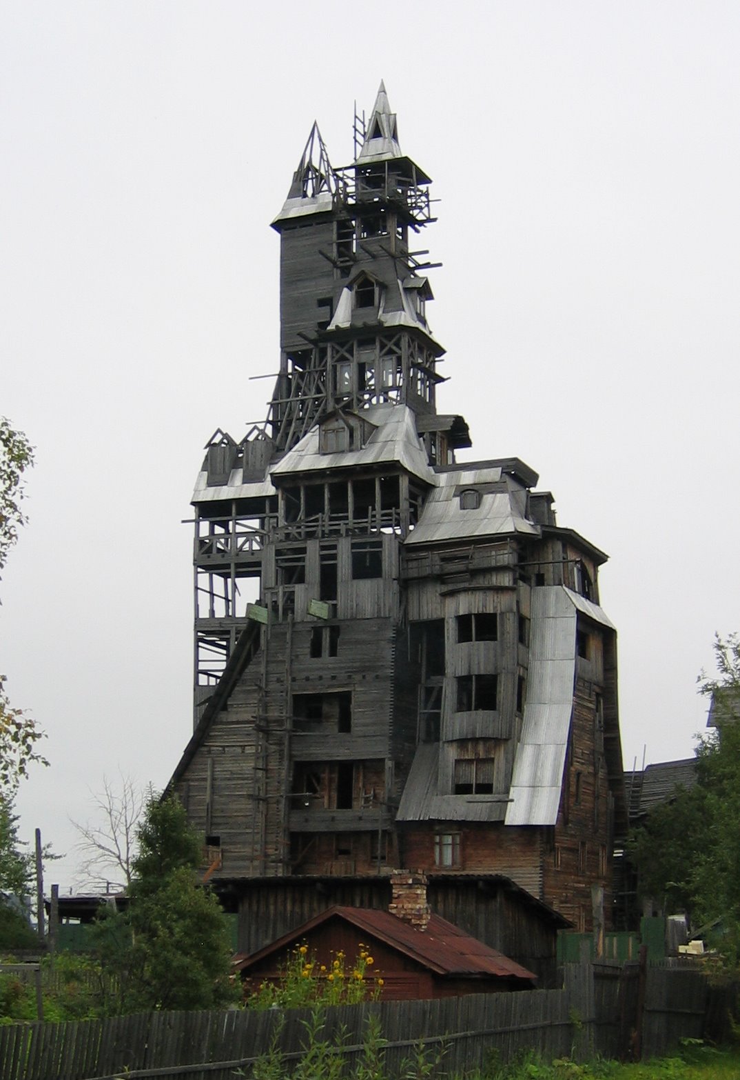 Tras cumplir una pena de cárcel por su pasado gangsteril, Nikolai Sutyagin se encontró con que no tenía nada que hacer, así que comenzó a hacer realidad su sueño: construir un gran edificio. Y lo hizo, de hecho está considerado, con sus 44 metros, el más alto de madera del mundo. Eso sí, ahora podrían demolerla: sólo tenía permiso para levantarla dos plantas