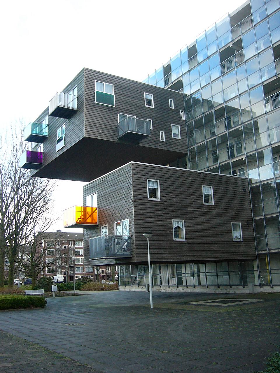 Construidos en los años 90 estos apartamentos son, llamativamente, viviendas para personas mayores de 55. El llamativo aspecto se debe, más que al deseo de originalidad, a los problemas de espacio. Es obra del estudio de arquitectura MVRDV