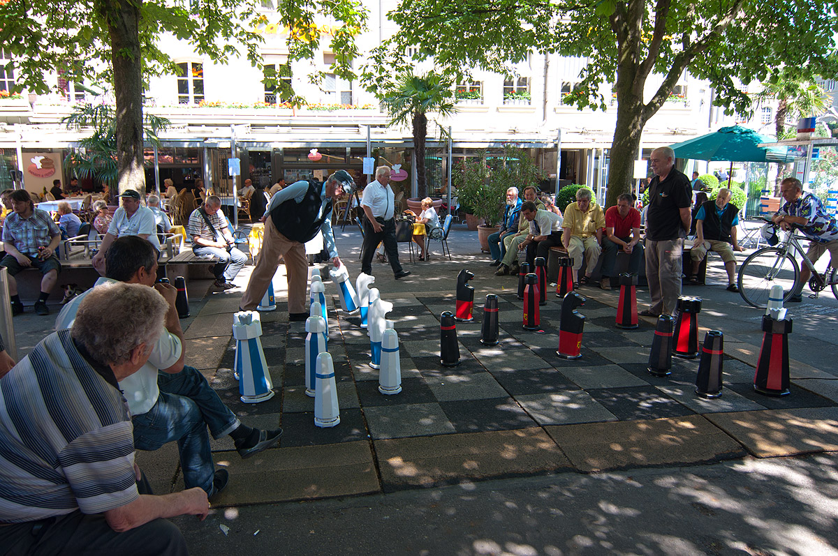 En toda Suiza se pueden ver lugares para que los ciudadanos disputen partidas de ajedrez en la calle. Si los contendientes son buenos incluso general cierta expectación a su alrededor