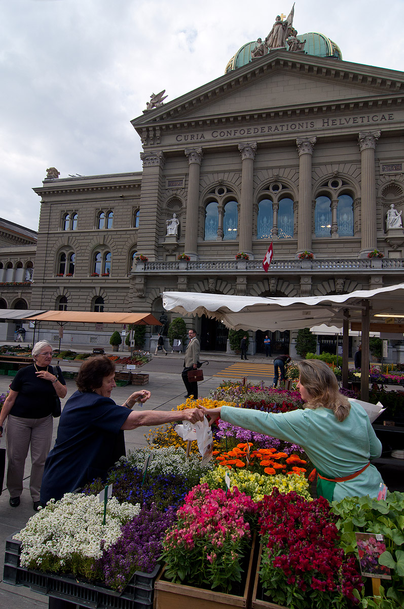 Contrariamente a lo que es habitual en Suiza, a los berneses les encanta hacer vida en la calle y hay muchos mercadillos, como uno de frutas, verduras y flores que se coloca en la plaza del Parlamento