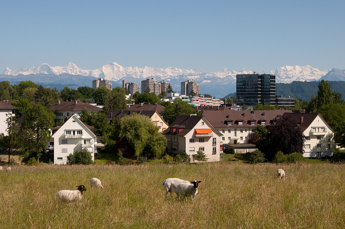 Berna es una ciudad relativamente pequeña y a unos pocos minutos del centro podemos encontrarnos con una escena tan bucólica, suiza y sorprendente como esta