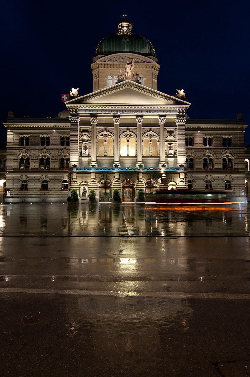 Otra escena nocturna de Berna, en este caso en la plaza en la que está el Parlamento de la República Helvética