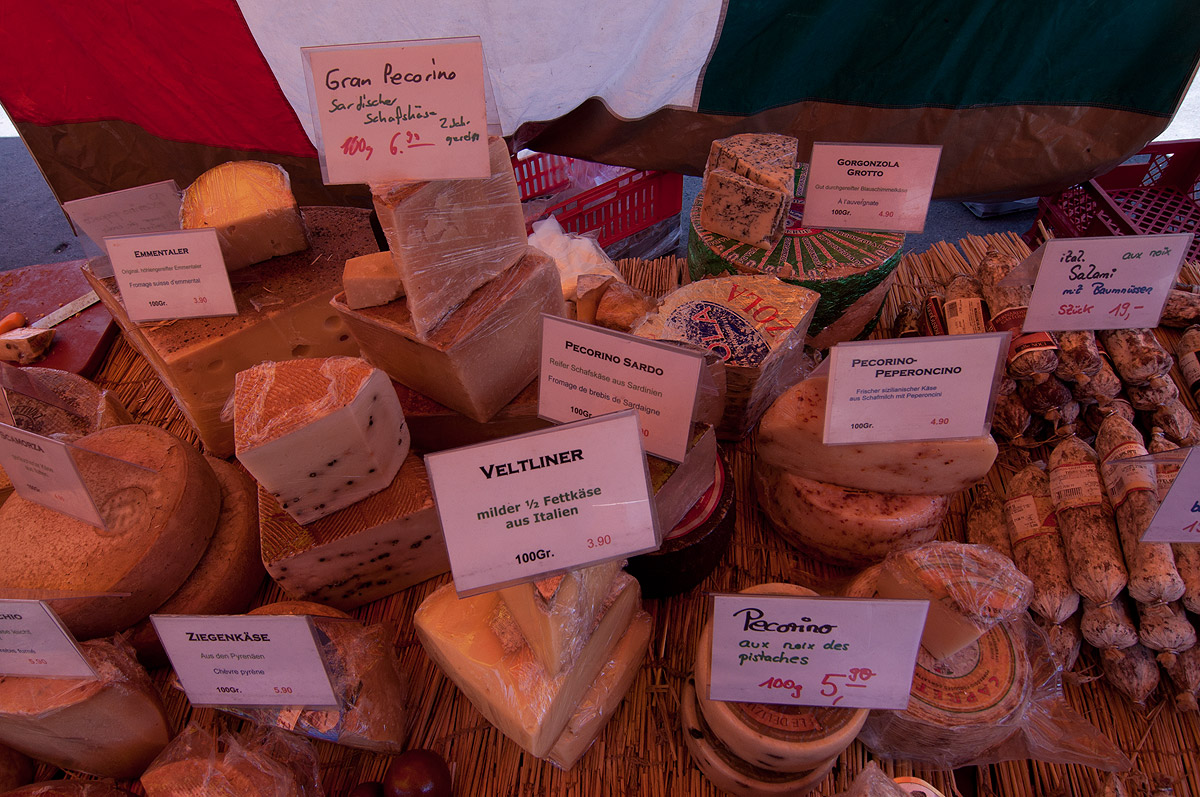 Y si algo tiene éxito en un mercadillo en Suiza son los quesos, en un país en el que el queso es casi más un asunto religioso que gastronómico. No en vano los dos grandes "platos nacionales" son la fondue y la raclette