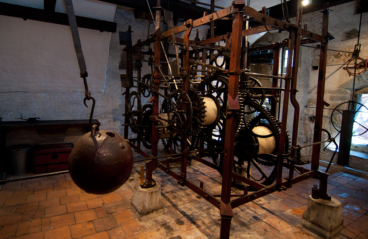 El curioso mecanismo del Zytglogge, movido por un péndulo hecho con lo que, según la tradición, es una enorme bala de cañón