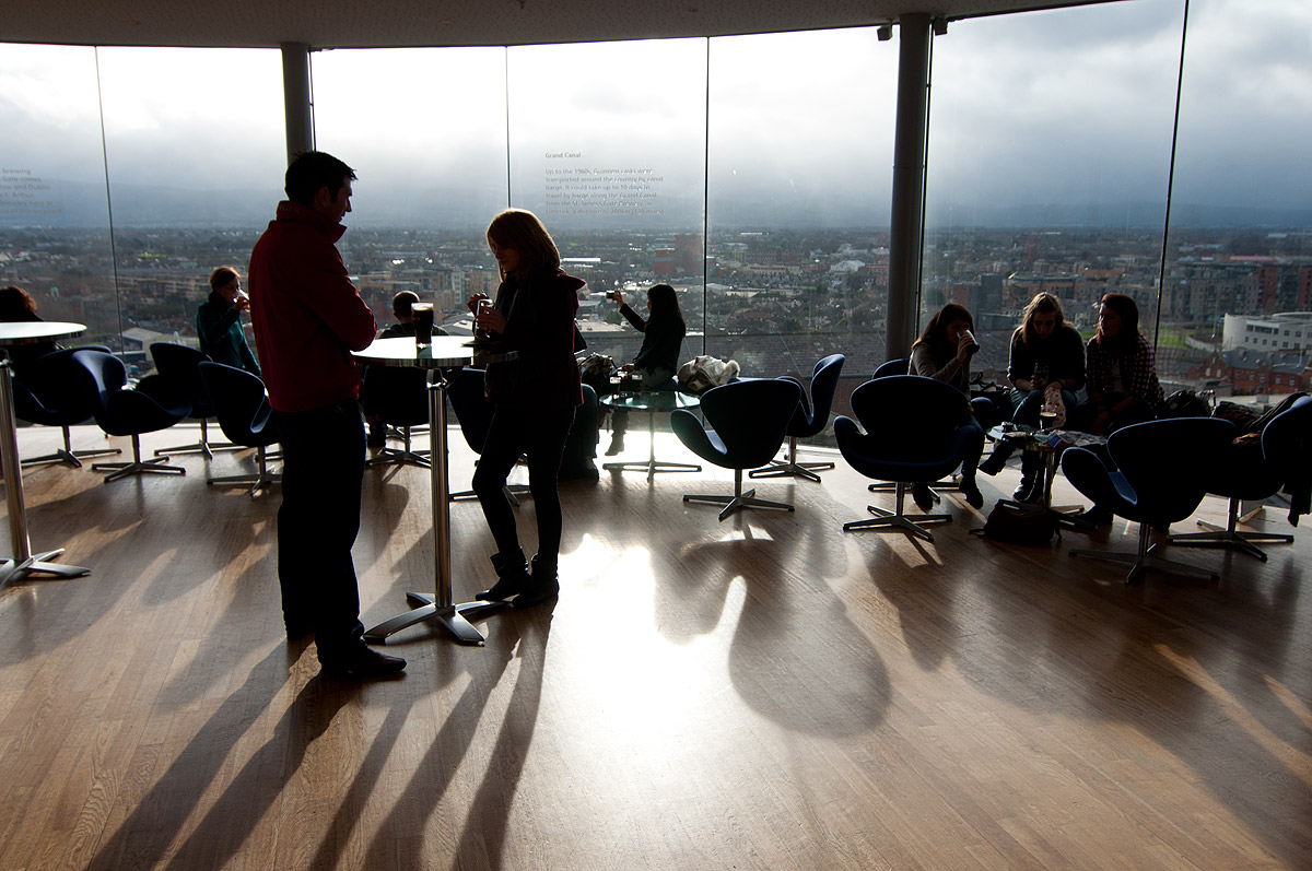 La gigantesca fábrica Guinness, uno de los grandes atractivos turísticos de la ciudad hoy en día, tiene un fantástico bar en su séptima planta en el que tomar una excelente pinta y disfrutar de vistas sobre todo Dublín