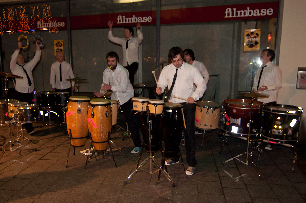 Una actuación en plena calle durante el Temple Bar Festival es una buena muestra de la animada noche dublinesa