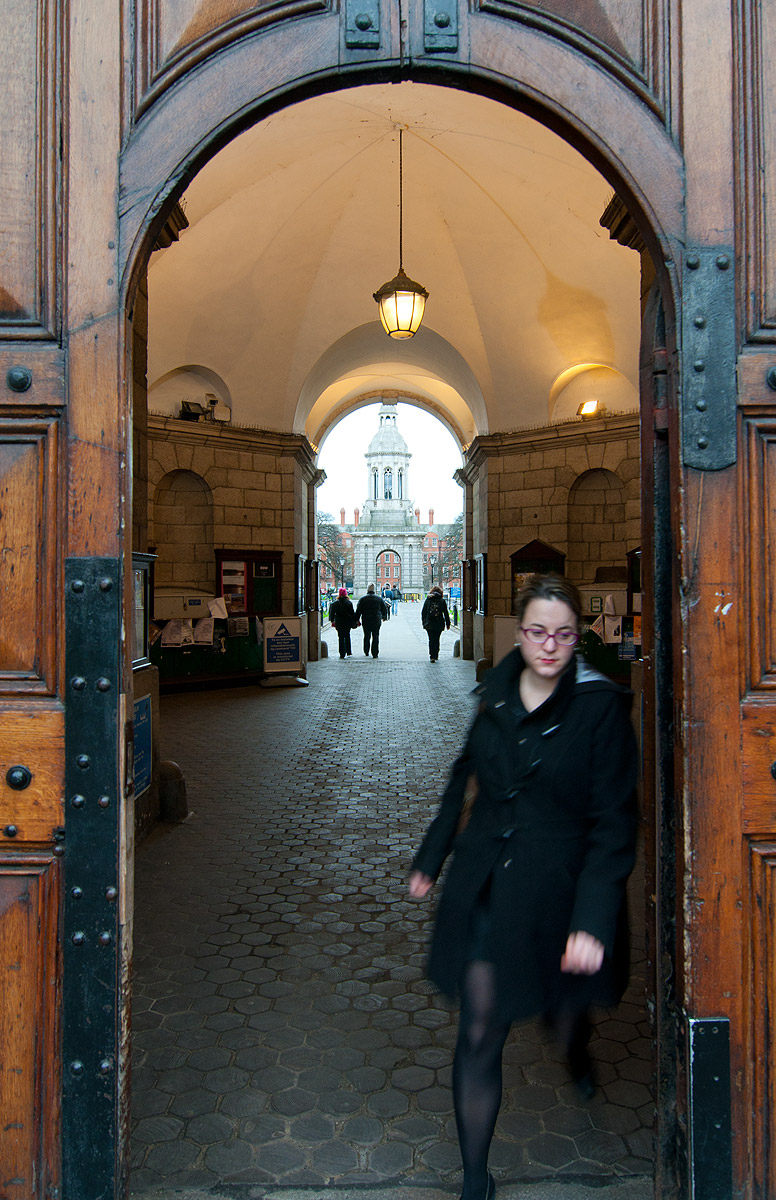 Una pequeña puerta nos lleva al pequeño campus del Trinity College, un oasis en el centro de la ciudad