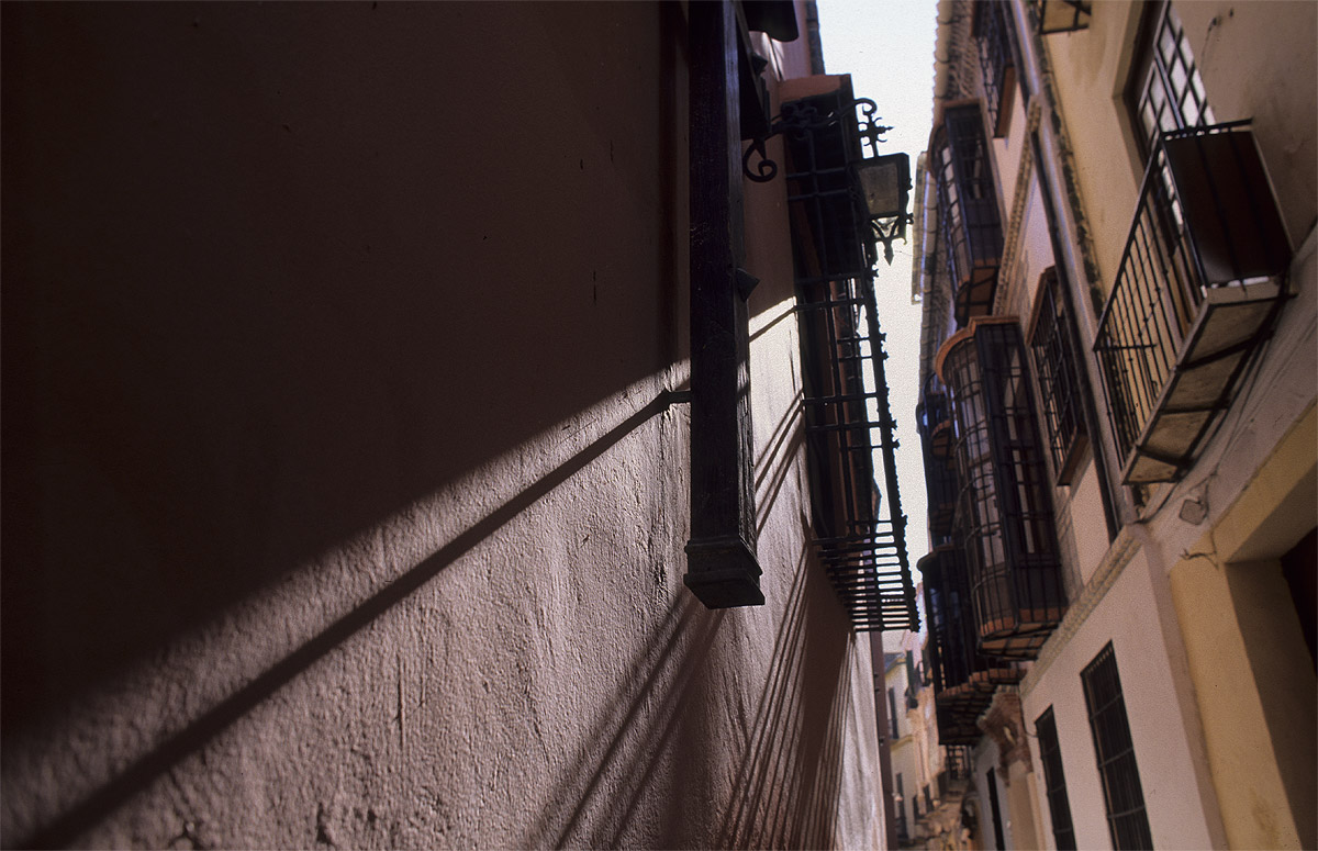 Una calle del centro de ciudad con la famosas rejas en las ventanas