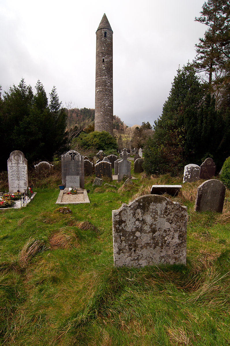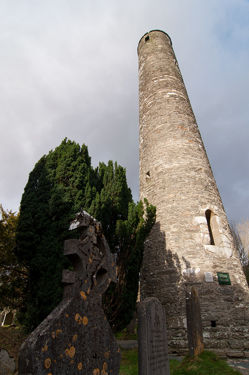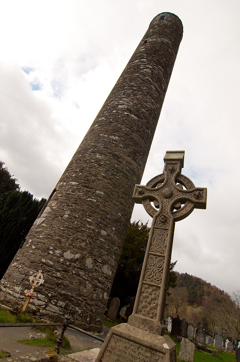 La altísima torre redonda es sin duda el edificio más llamativo de os que se conservan en Glendalough, y se ha convertido en un símbolo de Irlanda