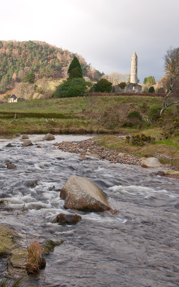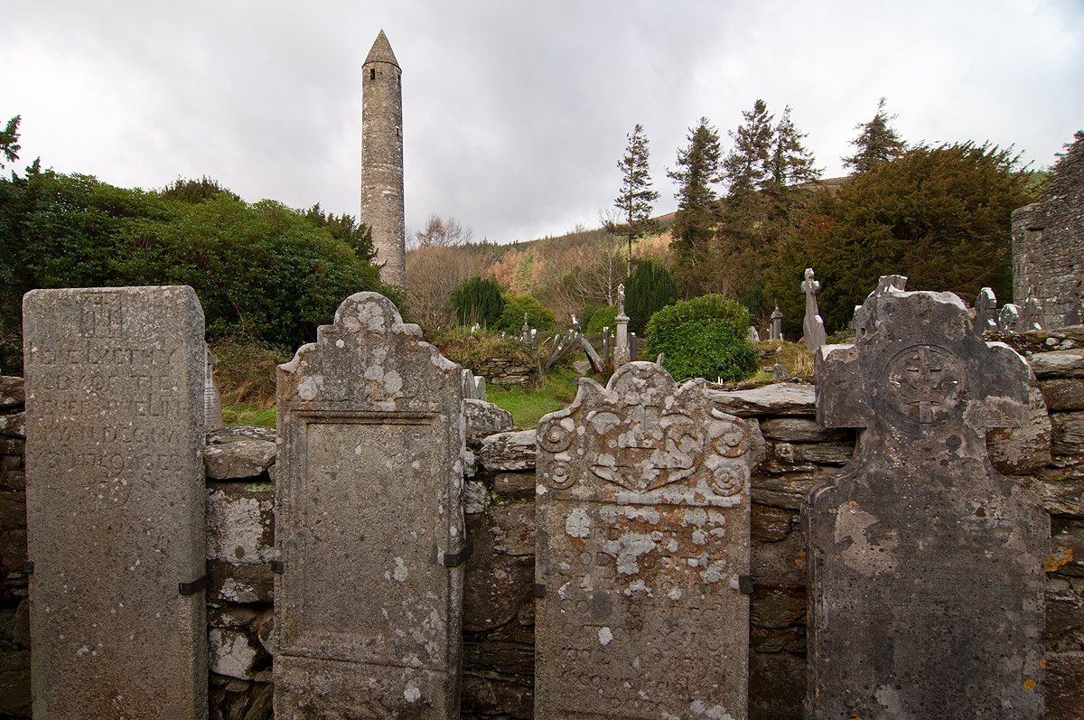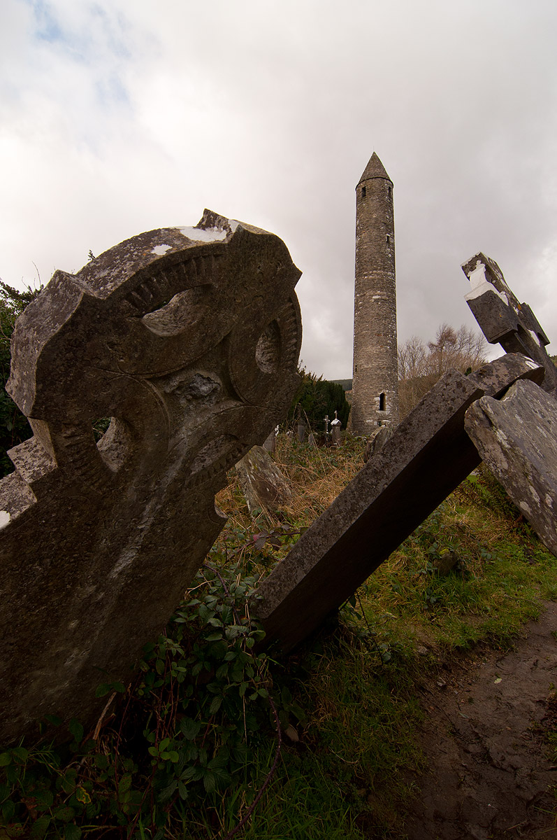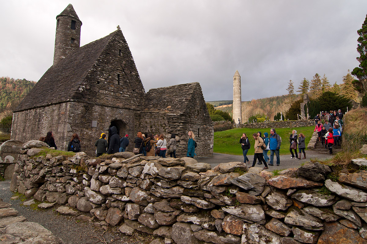 La altísima torre redonda es sin duda el edificio más llamativo de os que se conservan en Glendalough, y se ha convertido en un símbolo de Irlanda