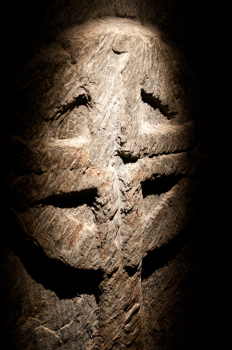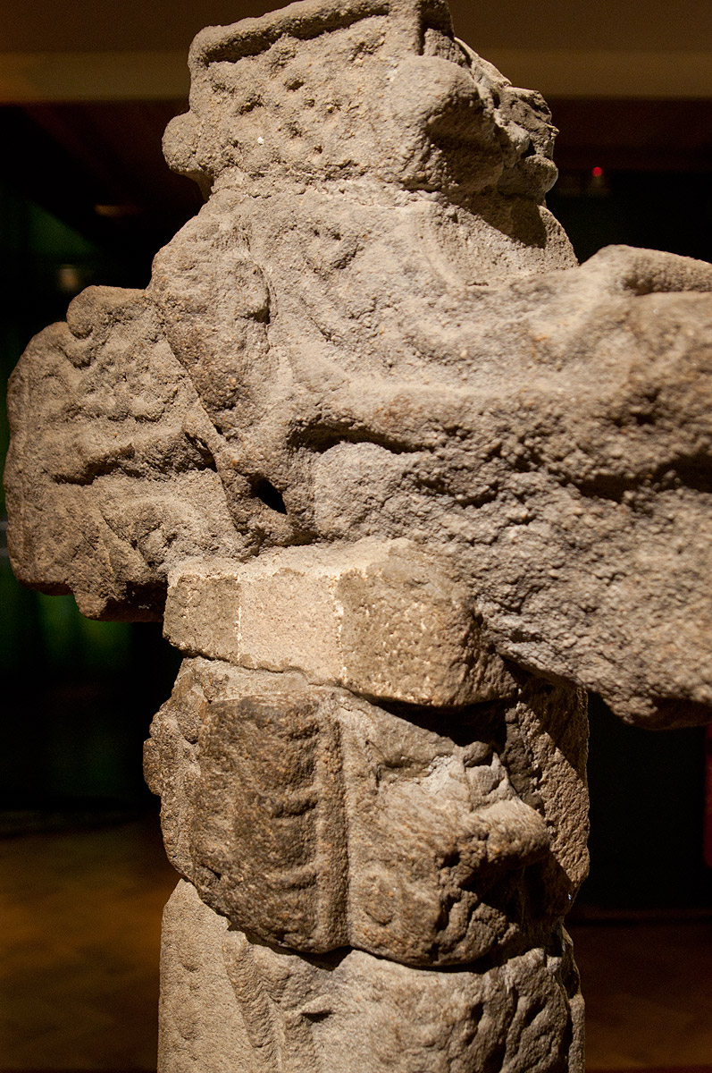 Una cruz grabada en la roca q se conserva en el centro de interpretación para visitantes del Glendalough