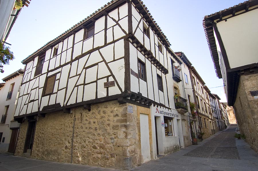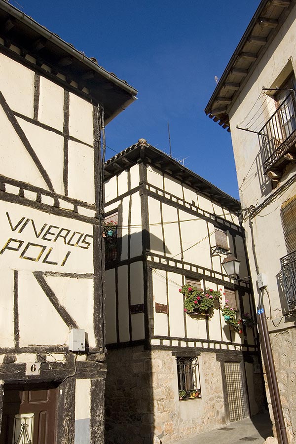 Las calles de Covarrubias tienen muchas casas con una preciosa arquitectura tradicional con entramado de madera y paredes blancas