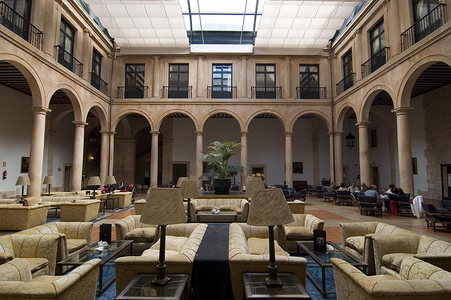 El interior del actual Parador, con una zona de descanso en el bellísimo patio renacentista