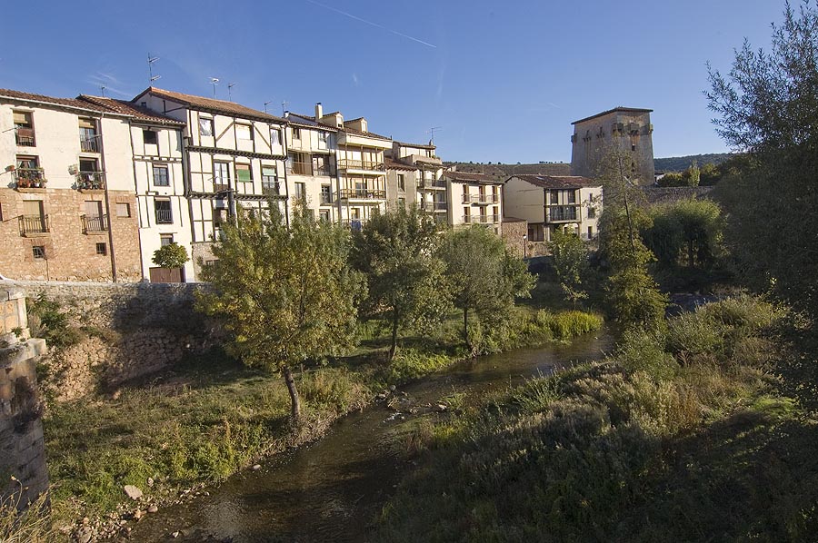 Una de las vistas más bonitas de Covarrubias, junto al río y con la Torre de Fernán González