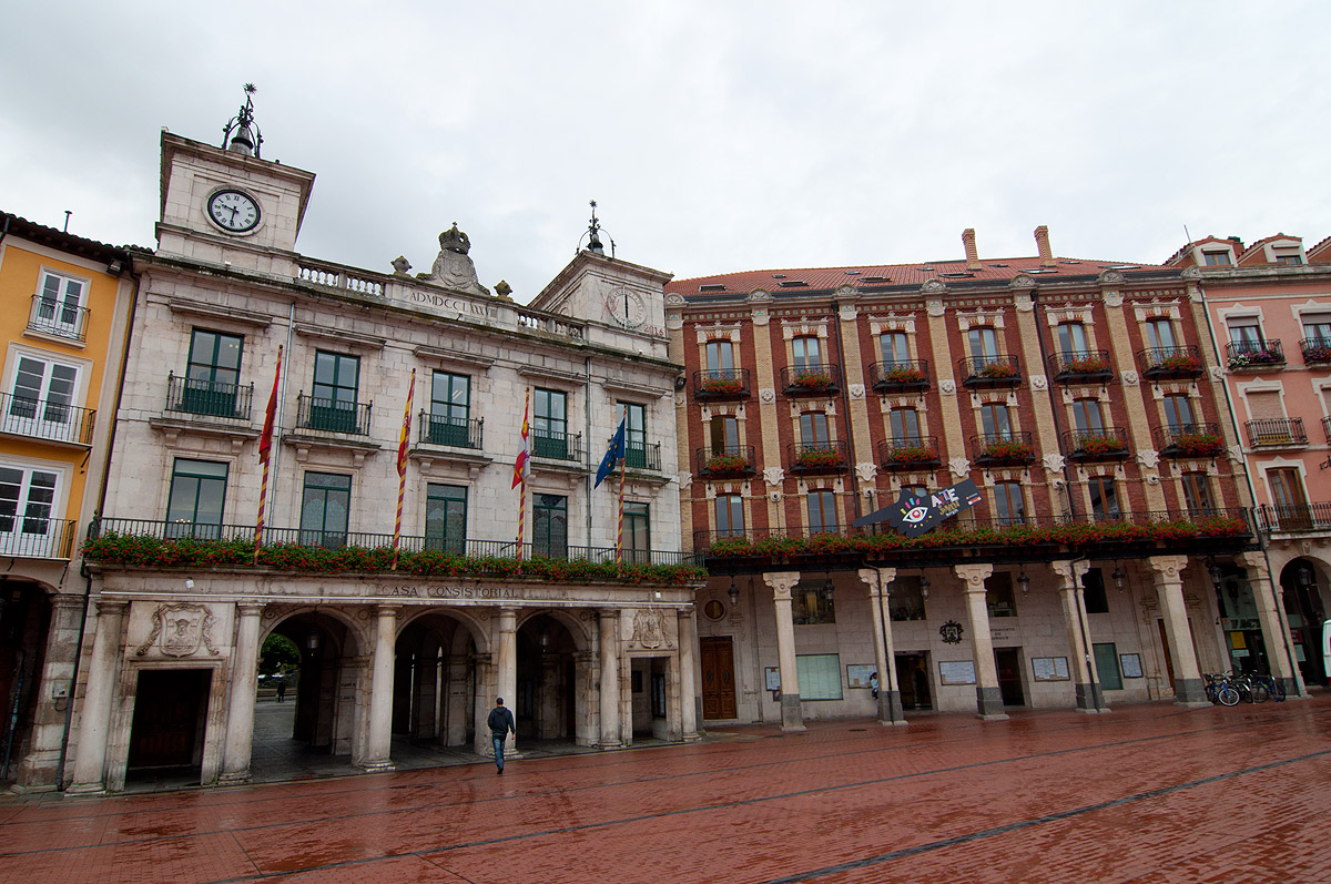 Una plaza que nace de la concesión de Fernando el Católico y Carlos I y que se completó al derribar la muralla. En pleno casco viejo de Burgos, junto al río y muy cerca de la catedral, es una plaza de forma irregular con altísimos soportales. Una de sus peculiaridades, la entrada a través de los arcos bajo el ayuntamiento que podemos ver en la imagen