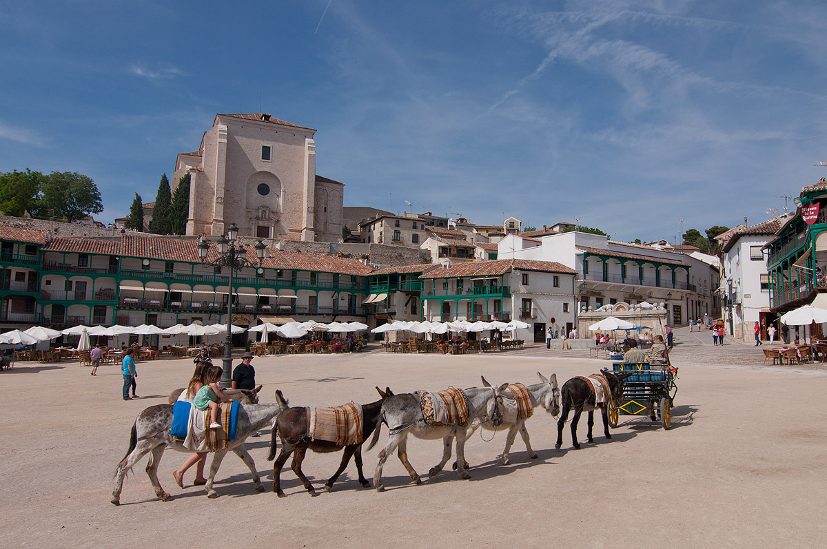 A sólo una treintena de kilómetros de Madrid encontramos la que sin duda es una de las plazas medievales más bonitas de España, la de Chinchón, que conserva vivendas del S XV al XVII. Pese a su forma extrañamente irregular es llamativamente armoniosa y también de una considerable amplitud. En ella siguen celebrándose festejos taurinos varias tardes al año