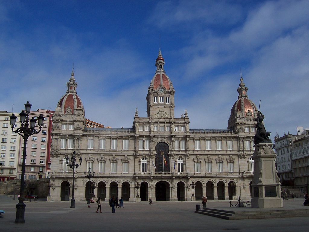 La plaza mayor de La Coruña está dedicada a María Pita, heroína gallega que luchó contra los pérfidos ingleses en el ataque de 1589. Fue construida entre 1860 y 1926 con forma cuadrada un soportal corrido. Dentro del conjunto de la plaza está el impresionante edificio del ayuntamiento, frente del cual y en guerrera actitud, encontramos la estatua de bronce de la propia María Pita