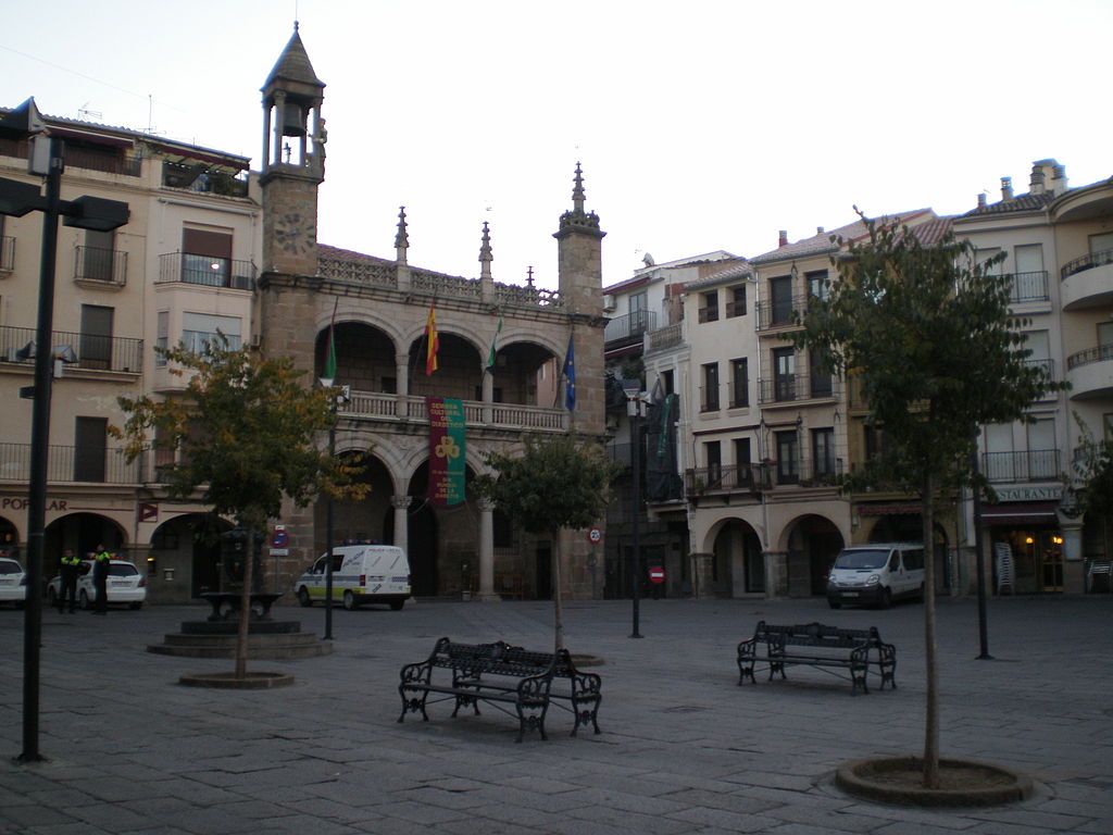 Porticada por todos sus lados, en la Plaza Mayor de Plasencia destaca sobre todo el edificio del ayuntamiento, que es una obra del S. XVI con un carácter muy personal. En su pequeña torre con reloj encontramos uno de los personajes más conocidos de la ciudad, el llamado abuelo Mayorga, que toca la campana del reloj con un martillo