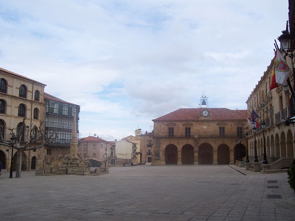 Una plaza de forma irregular y sin edificios que mantengan una unidad de estilo, sí tiene sin embargo varias edificaciones que resultan muy interesante como la Casa del Común, la Torres de Doña Urraca, el ayuntamiento o el Palacio de la Audiencia (en la imagen)