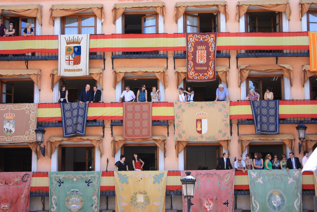 En parte diseñada por Juan de Herrera, Zocodóver ha sido el centro neurálgico de la vida en Toledo durante siglos. Su aspecto actual se debe también a un ensanche realizado a comienzo del S XVII, cuando se eliminaron algunas viviendas que reducían tanto el espacio como la perspectiva. En la imagen la vemos engalanada para el Corpus