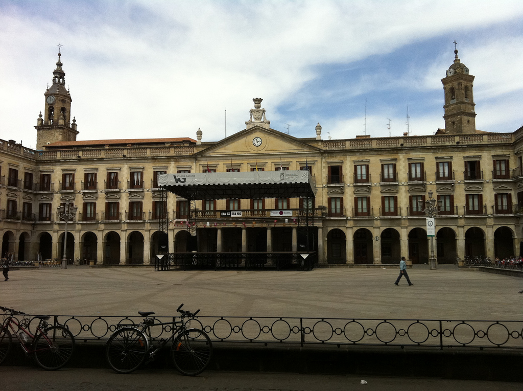 La Plaza Mayor o Nueva de Vitoria es la primera de las de estilo neoclásico que se construyen en las capitales vascas durante finales del S XVIII y la primera mitad del XIX. El proyecto se hizo en 1782, terminándose las obras tan sólo nueve años después, lo que constituye una llamativa celeridad para la época. De planta cuadrada, en su diseño se tuvo muy en cuenta su función como espacio para la realización de espectáculos taurinos