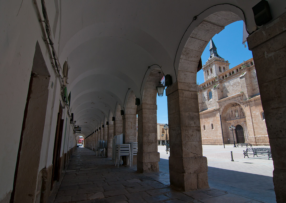 Otra impresionante plaza en Castilla-La Mancha, con soportales en dos de sus lados y cerrada en otro de ellos por la impresionante iglesia de San Andrés Apóstol. Los dos lados con soportales están realizados en hermosos edificios de estilo neoclásico