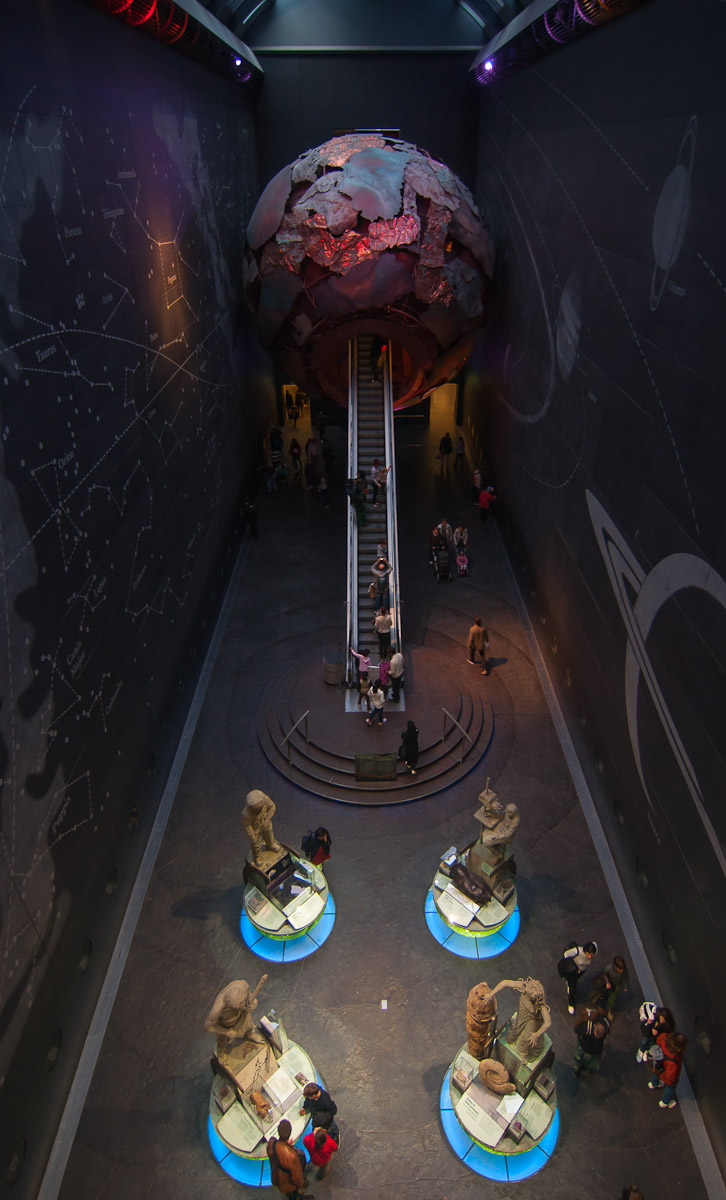 Una escalera que atraviesa un planeta en formación lleva a la planta del Museo dedicada a la geología