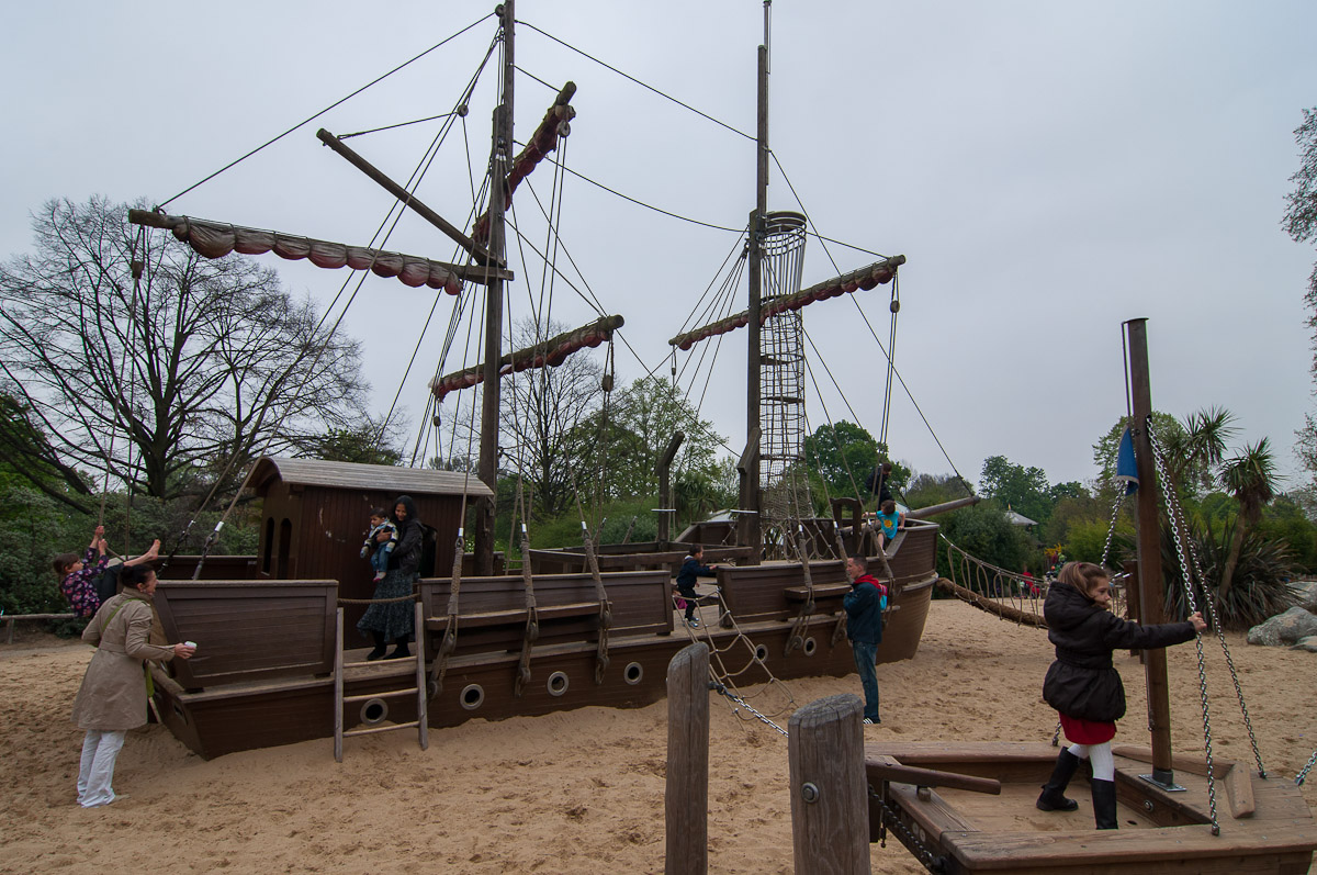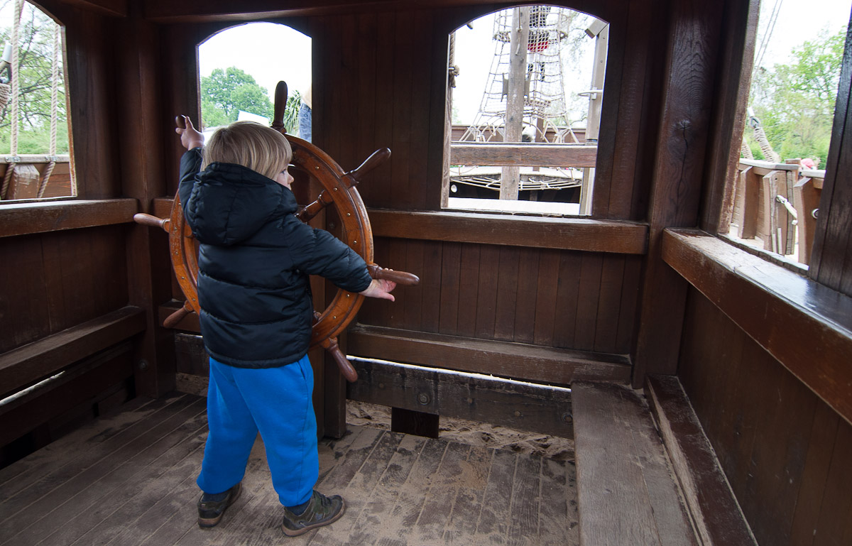 Un pequeño toma el timón del gran barco pirata de la zona de juegos