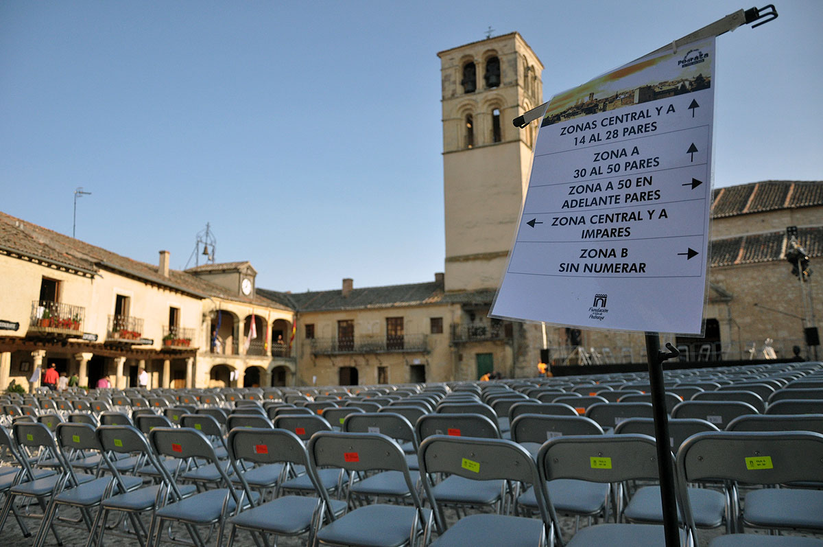 A media tarde en la plaza mayor de Pedraza, que albergaría, a las 10:00 de la noche, el Concierto de las Velas 2012.