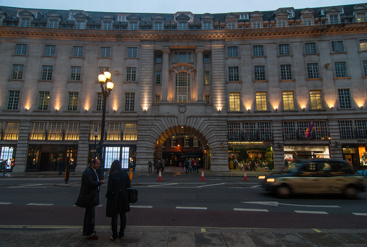 Un gran edificio que es buen ejemplo del tipo de lujosas casas en Regent Street, ya muy cerca de Picadilly