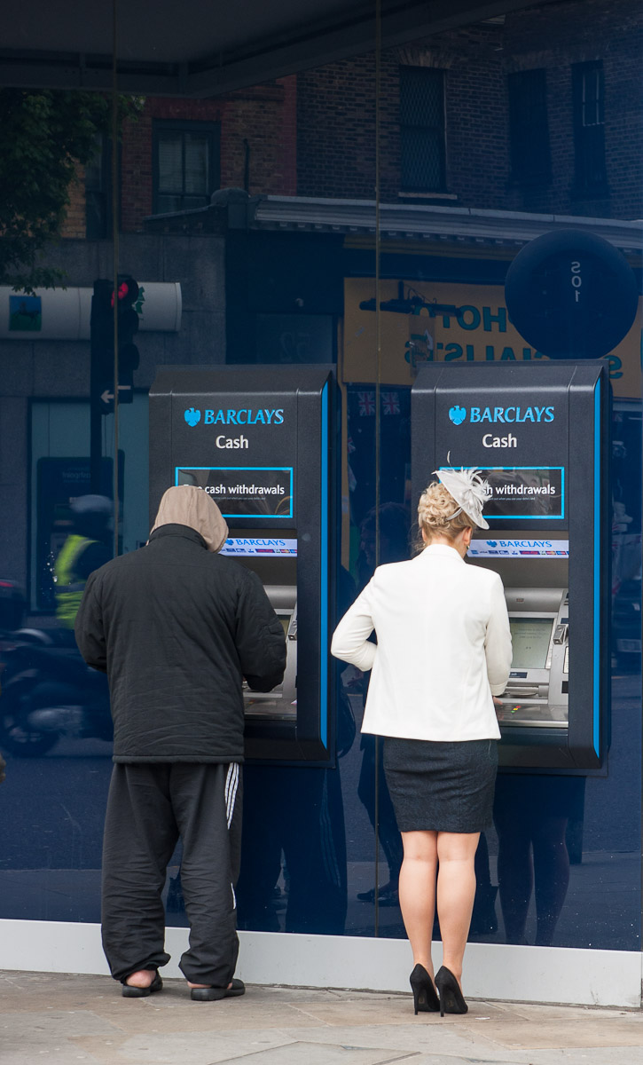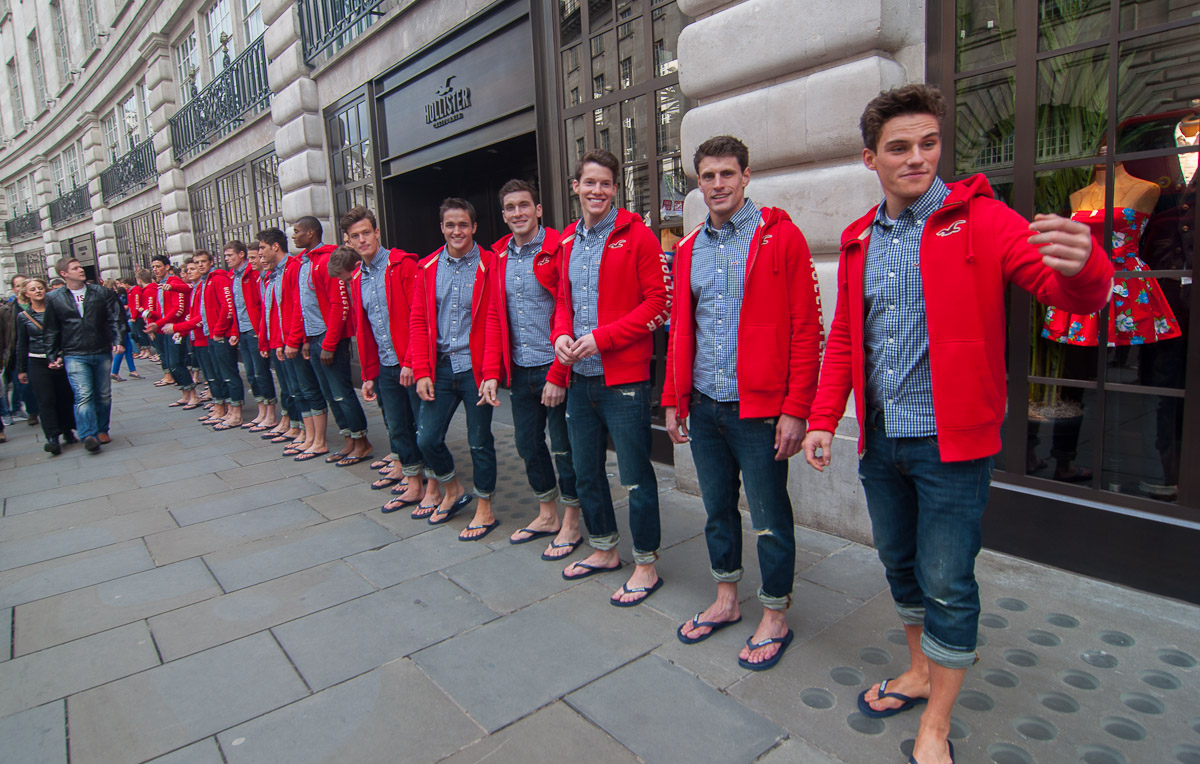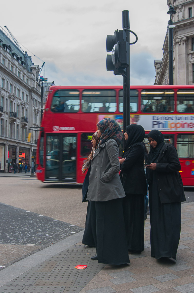 Las zonas de tiendas caras en Londres tienen una clientela de lo más variada. La imagen está tomada en una esquina de Oxford Street