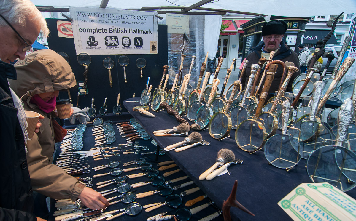 El mercadillo de Portobello tiene algo, pero con más dinero, de lo que era el Rastro madrileño hace unos años: el lugar donde encontrar lo improbable