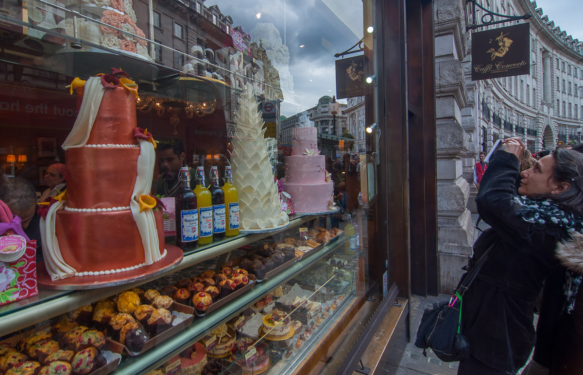 Una curiosa pastelería muestra en Regent Street un escaparate con un lujo muy inglés