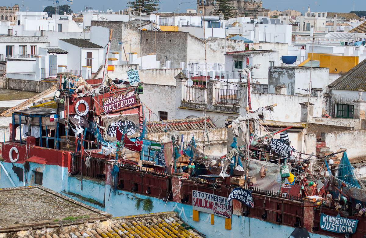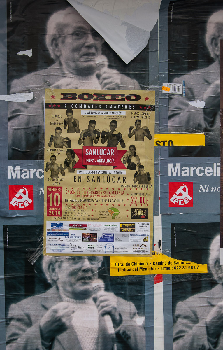 Carteles de lo más diferentes se mezclan en una pared de Sanlúcar
