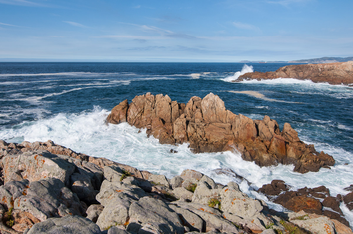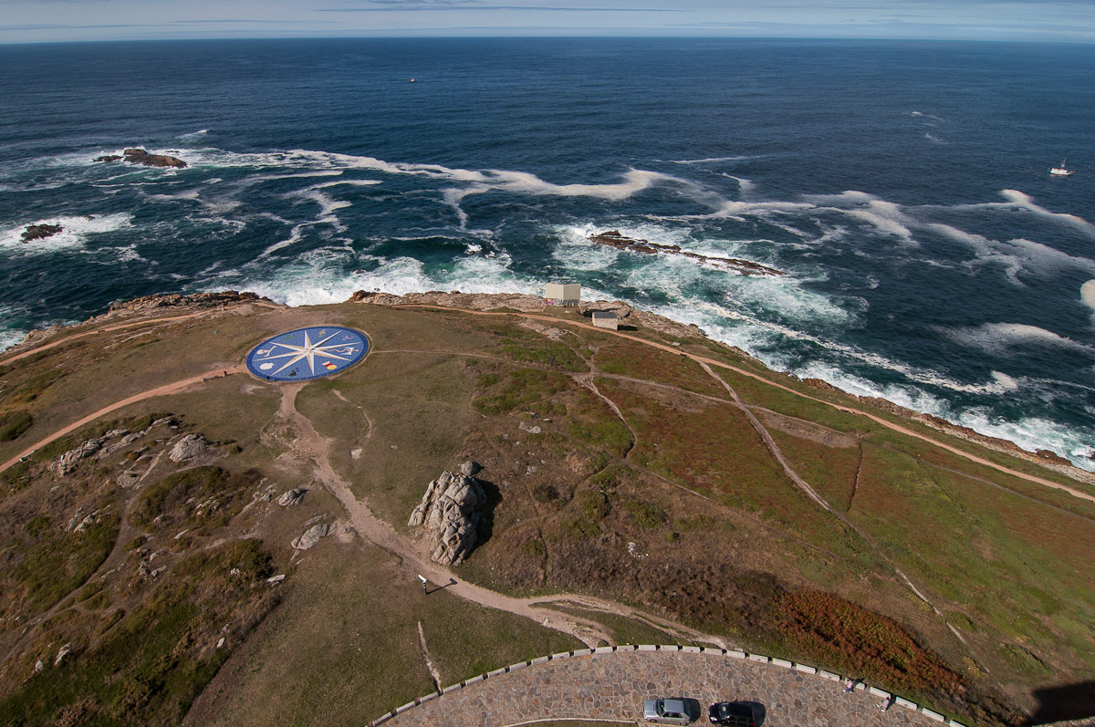 La costa vista desde lo alto del Faro, con la rosa de los vientos que forma parte del Parque Escultórico que rodea el Faro