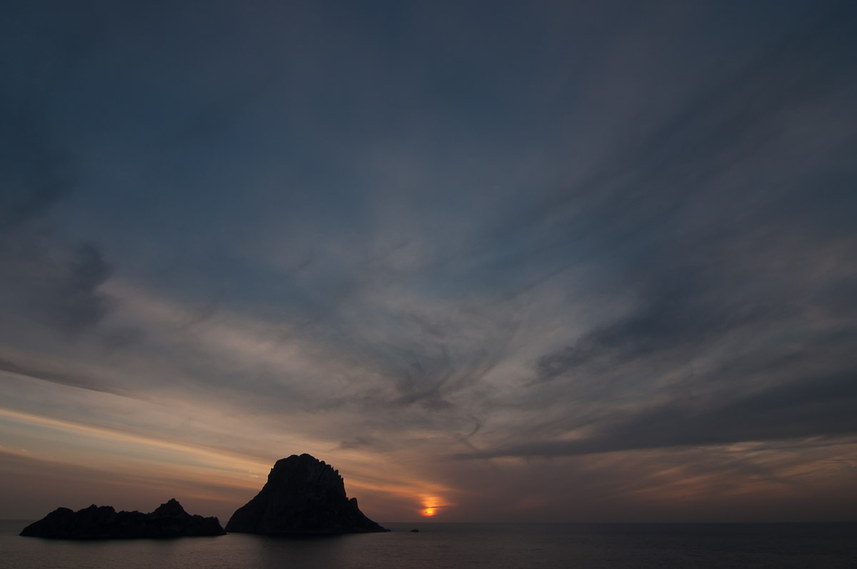 Pocos lugares tan bellos como la isla de Ibiza en toda España, y todavía menos con un clima privilegiado que hace de ella un destino agradable prácticamente en cualquier época del año. Además, Ibiza resulta un destino muy económico fuera de temporada, así que también es una buena idea desde ese punto de vista en esta época en la que tanto hay que tener eso en cuenta. En la imagen, un atardecer sobre Es Vedrá, en el oeste de la isla