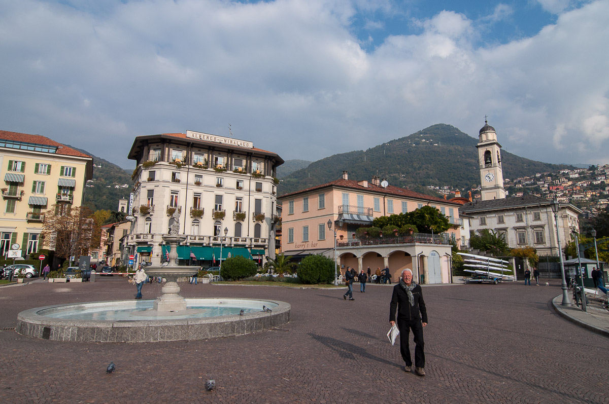 Cernobbio, cuya plaza vemos en la imagen, es uno de los preciosos pueblos en la orilla del lago en los que se respira un ambiente lujoso y hasta los viandantes transmiten la sensación de ser personas más que bien acomodadas