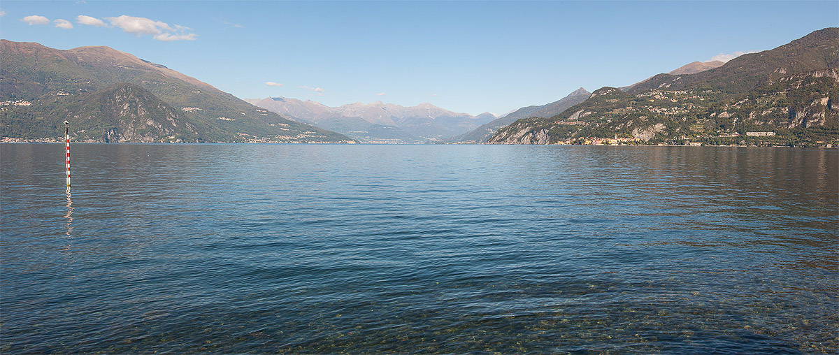Así se ve el Lago de Como desde Bellagio, que ocupa el extremo superior de la Y invertida que forman las aguas, así que en esta imagen tenemos frente a nosotros el ramal norte casi por completo