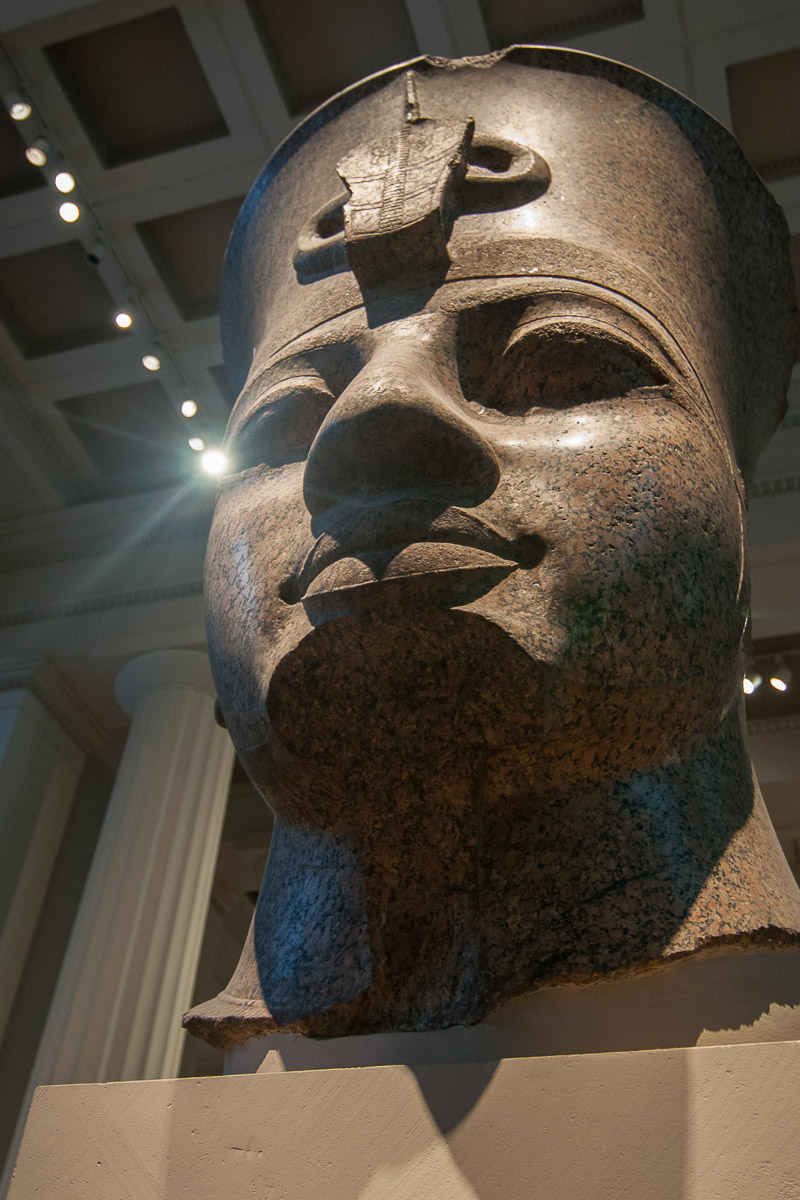 La cabeza de granito de lo que debió ser un enorme coloso. La colección de grandes esculturas egipcias del Museo Británico es la mejor que se puede contemplar fuera de Egipto