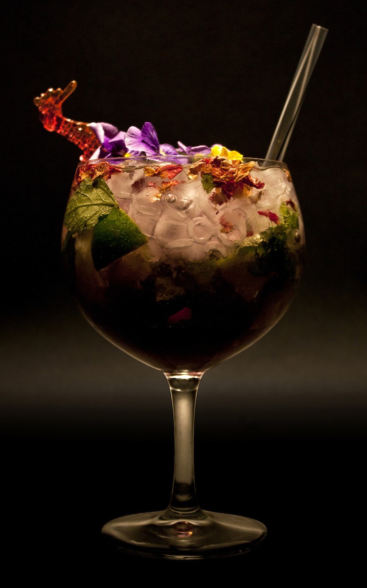 Mojito de flores, ron blanco, lima, hojas de menta, pétalos de rosas, agua de rosas, violeta y angostura. Compuestas por cinco espacios de diferentes tamaños, a las cuevas se accede por una de las puertas del exclusivo Hotel Mercure Madrid Santo Domingo.