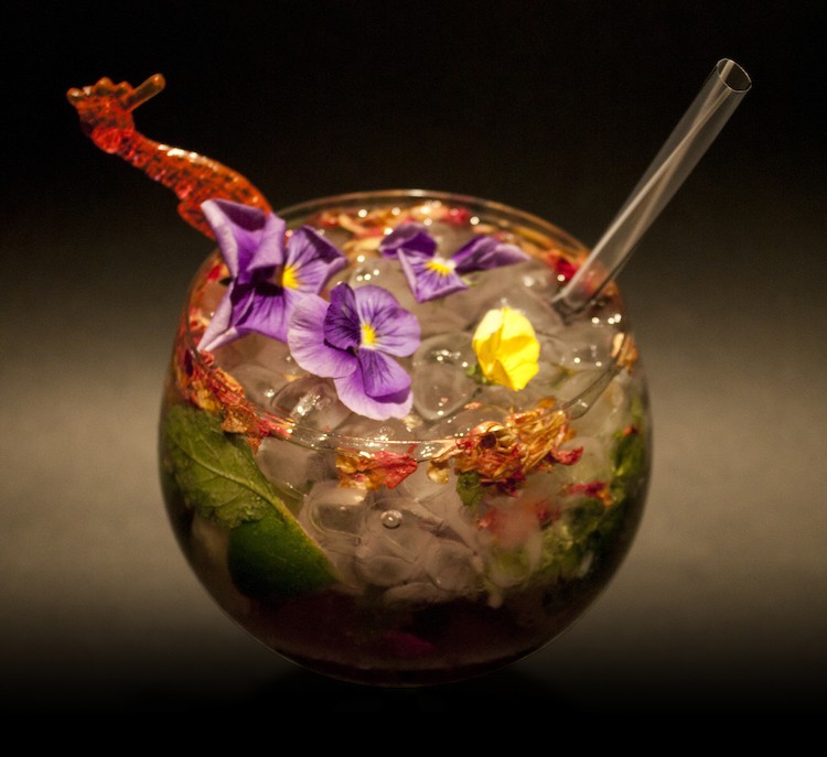 Mojito de flores, ron blanco, lima, hojas de menta, pétalos de rosas, agua de rosas, violeta y angostura, una de las especialidades de Sandó. En el taller, además, entregarán distintos ingredientes a los alumnos para que para que encuentren su combinación personal. La mejor será premiada con una cena en el restaurante Sandó by Arzak Instructions.